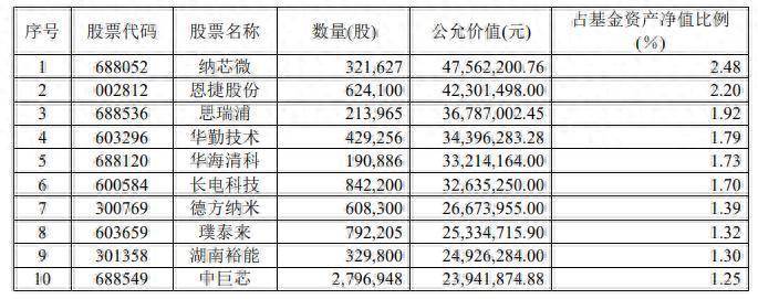 信澳新能源产业股票前十大重仓股名单