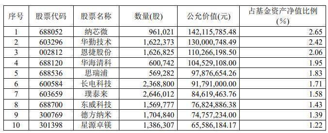 前十大重仓股中,仅华勤技术和华海清科为去年末的留存品种,且均出现明显减持。而去年末,华勤技术曾是该基金第一大重仓股,歌尔股份为第二大重仓股,兆易创新、中际旭创、中微公司等亦位列前十大。